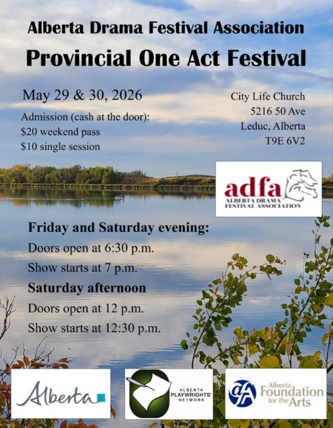 WHAT: 3 Sessions with a total of 10 one act plays from regions all across Alberta. Join us in celebrating the best of Alberta’s community theatre!